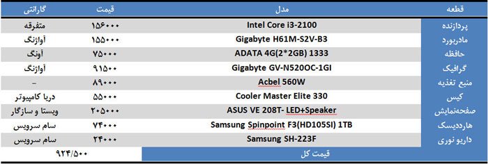 خوشبختانه سیستم پیشنهادی دو هفته قبل مورد توجه بسیاری از عزیزان قرار گرفت و ما را بر این داشت تا برنامه های جدیدی برای این بخش بریزیم که در اینده ای نزدیک نتایج آن را در وب سایت خواهید دید. مانند هفته قبل سعی کردیم با سیستم کامپیوتری مناسبی در رده های گران، متوسط و ارزان قیمت به سراغ شما عزیزان بیاییم تا شاید با استفاده از این پیشنهادات بتوانید سیستمی مناسب خریداری کنید. ما برای دست یابی سریع به نتایج از بیان توضیح در مورد قطعات خوددرای کردیم پس در صورتی که سئوال یا مسئله در این میان وجود دارد با ما در میان بگذارید. همچنین از همه عزیزان می خواهیم اگر دوست دارند مشخصات سیستم خود یا هر سیستم کامپیوتری که به تازگی اسمبل کرده اند را معرفی کنند لطفا مشخصات آن را در یک ساختاری جدولی با صورت یک فایل متنی قابل ویرایش برای ما به آدرس info@sakhtafzarmag.com ارسال کنند تا بعد از بررسی در سایت درج شود.
