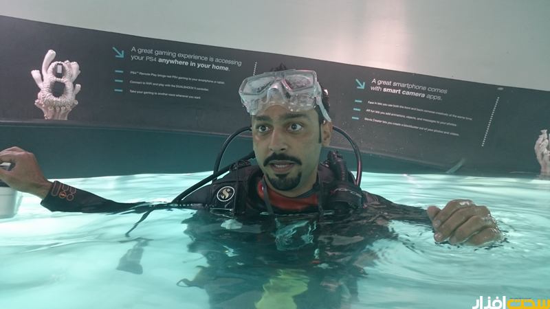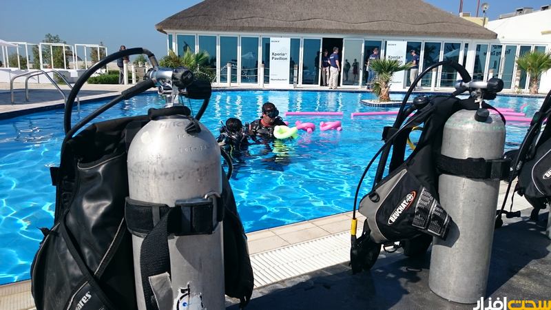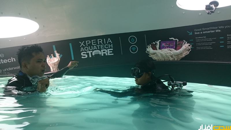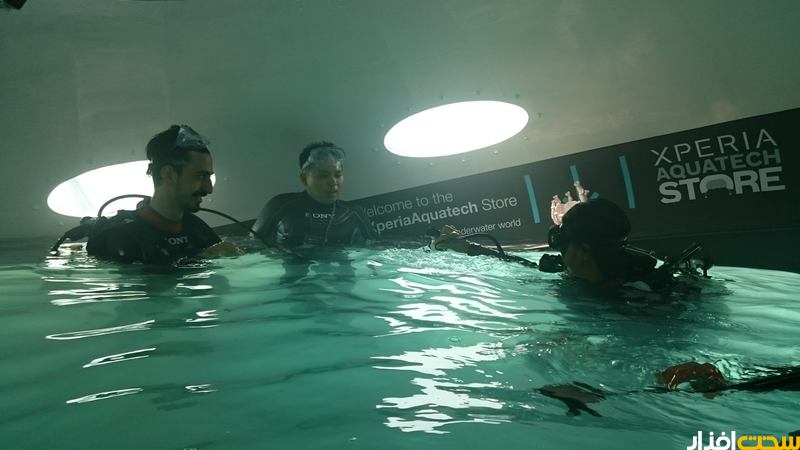بعد از حدود چند متر شنا کردن به لطف غواصی که به همراه هر فرد حضور داشت به محوطه اصلی فروشگاه رسیدیم که در نوع خودش بسیار جالب توجه بود و نشان از خلاقیت سونی در ارائه ایده های متفاوت دارد. در محوطه این فروشگاه دستگاه های سری اکسپریا و تجهیزات جانبی سونی حضور داشتند که به راحتی و در مدت 15 دقیقه ای که به هر نفر تعلق داشت، قادر به کار کردن با آنها در زیر آب یا بیرون از آن بودیم. اتفاقا فرصتی دست داد تا با یکی از دوستان تیم سونی ایران مصاحبه ای متفاوت داشته باشیم که در نوع خودش تجربه متفاوتی است که ان شالله بزودی روی وب سایت مشاهده خواهید کرد.