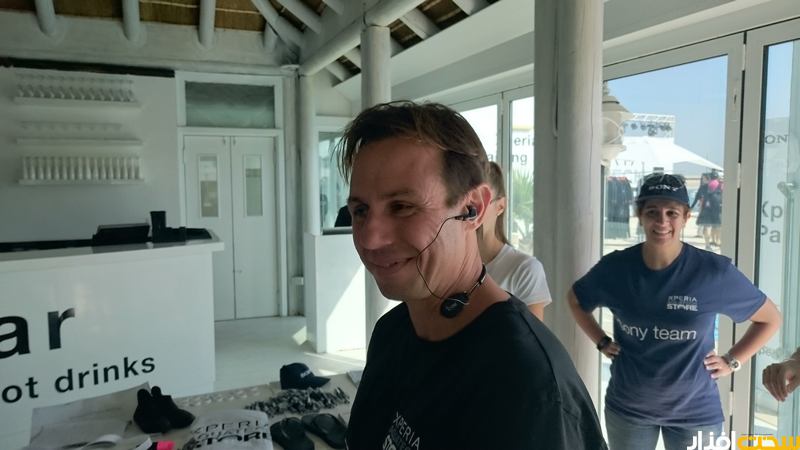 در گوشه ای از محوطه انتظار خبرنگاران برای این دوستان محیط کوچکی از محصولات جدید سونی موبایل برگزار شده بود تا از نزدیک آنهم روی زمین خشک با این محصولات بیشتر آشنا شوند و اگر سئوالی نیز دارند از نزدیک و بدون واسطه از مدیران سونی بپرسند که واقعا یک فرصت استثنایی برای خبرنگاران این بخش بشمار می رفت. ما هم مصاحبه کاملا متفاوتی با رودریگر آدنباخ انجام دادیم که در نوع خودش اولین به حساب می آید. پس تا الان قول دو ویدیوی جالب و متفاوت را به شما عزیزان دادیم که به زودی روی وب سایت قرار خواهد گرفت.