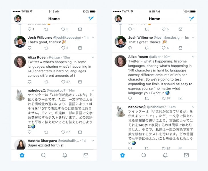 توئیتر توضیح داده که اغلب کاربران انگلیسی زبان از محدودیت 140 کاراکتری رضایت ندارند و مجبور می شوند که توئیت های خود را به دو یا چند قسمت تقسیم کنند. این مشکل در بین کاربران آسیا مانند چین، ژاپن و کره چندان رایج تر نیست و درصد خیلی کمی از کابران شرق آسیا از قانون 140 کاراکتری توئیتر استفاده میکنند (کمتر از این ظرفیت توئیت میکنند). به همین دلیل توئیتر تصمیم گرفته است محدودیت 280 کارکتری را برای کاربران چینی، ژاپنی و کره ای اعمال نکند. اما باقی کاربران به زودی این تغییر را مشاهده خواهند کرد.