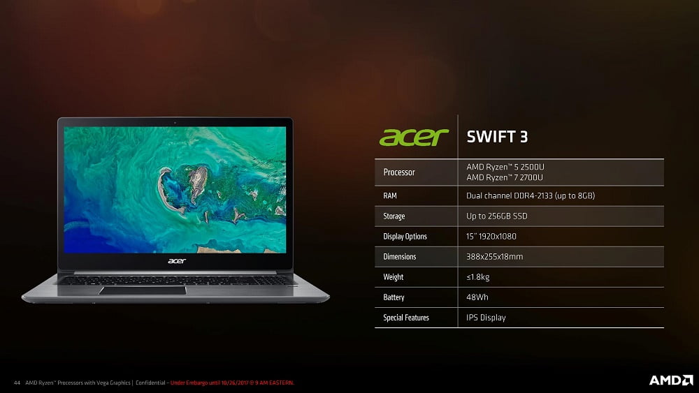 الترابوک های Acer Swift 3 با پردازنده های AMD Mobile Ryzen