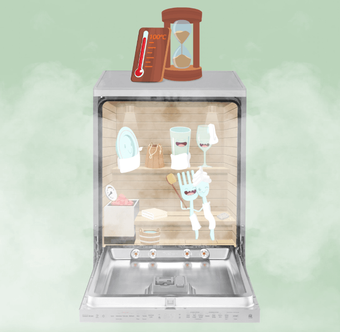 فناوری TrueSteam™ به کار رفته در ظرفشوییهای الجی بخاری بسیار تمیز را تولید و پخش کرده و با یک شستشوی بسیار بهداشتی و ضد باکتری، تمام ظروف از جمله بشقابها، لیوانها و غیره را پاک میکند. همچنین این ظرفشویی میتواند هر نوع خطر مسمومیت غذایی به خاطر وجود ذرات غذایی سوخته را از بین ببرد.