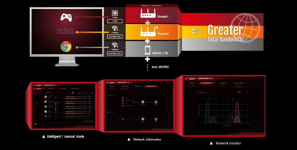 ایسوس در مادربوردهای مخصوص بازی خود با استفاده از یک چیپ اختصاصی Intel Gigabit به منظور کاهش بار پردازشی اضافه بر CPU، استفاده کرده است. همچنین تمامی این سری از مادربوردها با فناوری LANGuard ایسوس تولید می شوند تا اثرات نویز و الکتریسته محیطی را بر روی سیگنال های شبکه خنثی کند. نتایج استفاده از چنین سخت افزاری، عملکرد هرچه بهتر کارت شبکه است. اما این انتهای بحث شبکه نیست! ایسوس علاوه بر اینها از یک نرم افزار انحصاری با نام GameFirst برای مدیریت بسته های شبکه استفاده می کند. فناوری GameFirst با استفاده از برخی الگوریتم ها، بسته های مخصوص بازی را شناسایی کرده و برای ارسال و دریافت آنها اولویت بالاتری را قائل می شود. این امر منجر به پایین آمدن پینگ بازی و جلوگیری از وقفه در بازی های شبکه ای می گردد.