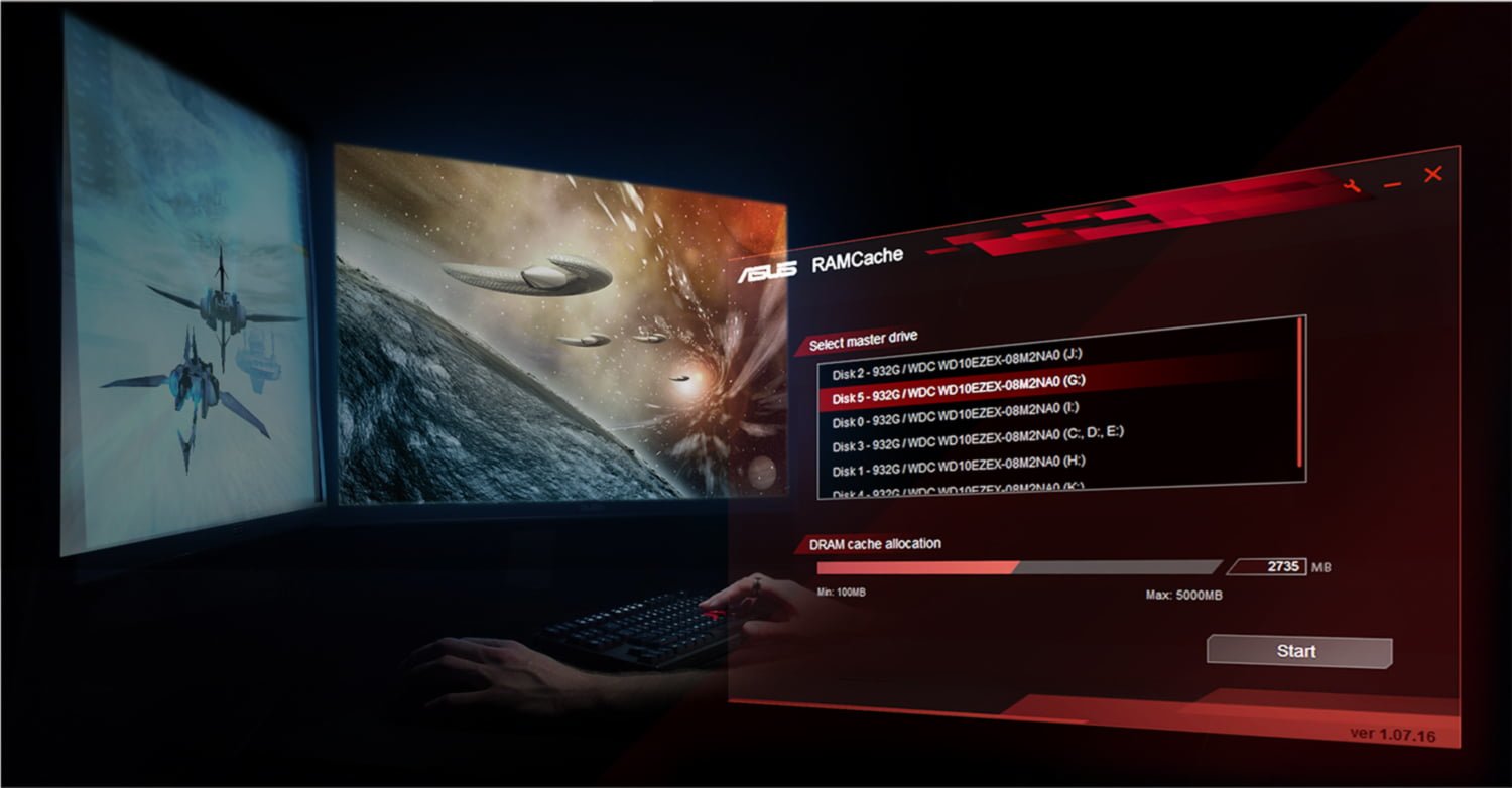 این نرم افزار مقداری از رم سیستم را (که بالاترین سرعت خواندن و نوشتن را داراست) به عنوان حافظه کش در نظر می گیرد و کاربر می تواند بازی ها و نرم افزارهایی را که بارگذاری طولانی دارند به کمک ROG RAMCache بسیار سریعتر اجرا کنند. نرم افزارهای مشابه ROG RAMCache وجود دارد و کاربر باید برای استفاده از آنها مبلغی حدود 70 دلار پرداخت کند، این در صورتی است که ایسوس ROG RAMCache را به صورت رایگان در تمام مادربوردهای مخصوص بازی خود قرار داده است!