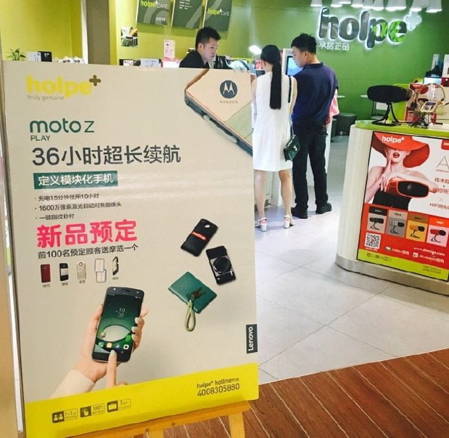 اخیرا شاهد افشای تصویری از Moto Z Play، گوشی معرفی نشده ی ساخت موتورولا / لنوو بوده ایم و حال این گوشی در یک فروشگاه چینی خودنمایی کرده است و قطعا به زودی شاهد رونمایی رسمی این دستگاه خواهیم بود. همانند Moto Z و Moto Z Force این گوشی نیر با توجه به تصاویر دارای قابلیت ماژولار است و از ماژول های Moto Mods پشتیبانی میکند. در تصویر منتشر شده، شاهد ماژول بلند گوهای JBL SoundBoost هستیم که در حال حاضر با قیمت 79.99 دلار توسط موتورولا به فروش میرسد. همچنین شاهد تصویری از ماژول دوربین Hasselblad هستیم که هنوز در فروشگاه های کمپانی موجود نشده است. ماژولی که گوشی شما را به یک دوربین بسیار قوی با قابلیت زوم بسیار بالا تبدیل میکند.