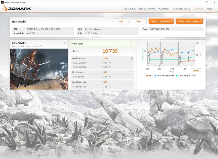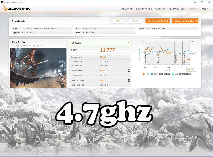 مرحله بعدی مربوط به تست های برنامه بسیار مهم و شاخص 3D Mark است.این قسمت نیز دو حالت اورکلاک و فرکانس پایه مشخص شده است.
