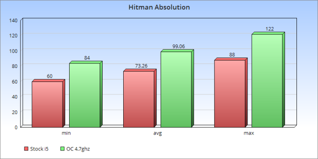 تصویر زیرین مربوط به بازی Hitman:absolution است که در دقت 1080p اجرا شده است.همانطور که مشاهده می کنید تفاوت اورکلاک بسیار زیاد است!