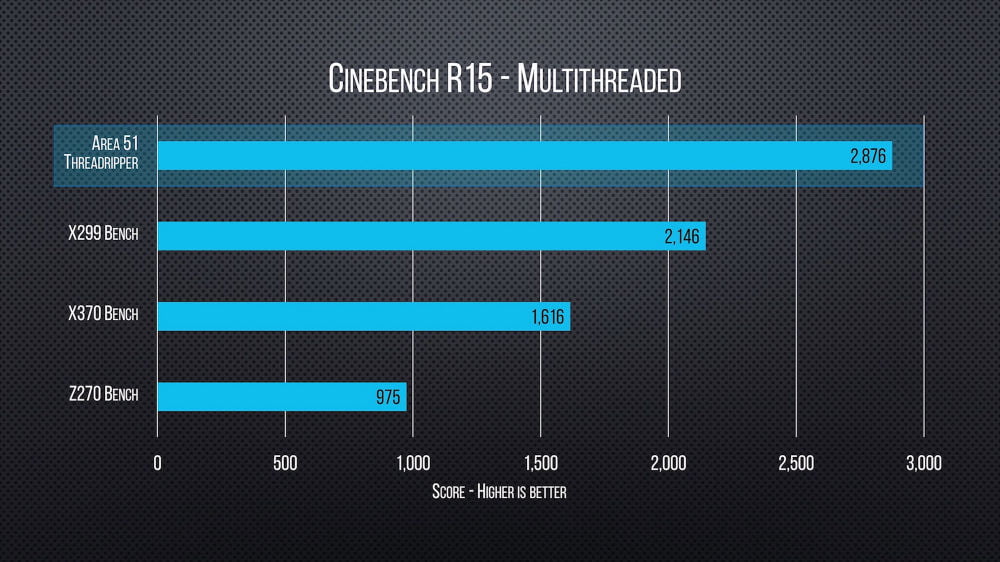 پردازنده های AMD Ryzen Threadripper در آستانه ورود به بازار هستند؛ این محصولات در کلاس HEDT، دارای تعداد هسته های بالا و رشته های پردازشی متعدد بوده و به طور خاص با پردازنده های Intel Core-X وارد رقابت خواهند شد. در حال حاضر هیچ مجموعه ای Review های این پردازنده ها را منتشر نکرده و باید منتظر زمان قانونی این مورد باشیم؛ اما کامپیوترهای Alienware در برخی از کانفیگ های خود به پردازنده های AMD Ryzen Threadripper مجهز هستند که از همین رو برخی از وب سایت ها مانند VC نتایجی را منتشر کرده اند که منتسب به پردازنده ی 1950X است. در آخرین اخبار موجود، اسلاید هایی منتشر شده است که کارایی این پردازنده (1950X) را در بازی و رندرینگ به نمایش می گذارد. X399 که میزبان پردازنده 1950X است، با سیستم هایی که از مادربردهای اینتلی با چیپست های X299 و Z270 استفاده می کنند، به رقابت پرداخته است. هر 4 سیستم از کارت گرافیک NVIDIA GeForce GTX 1080 Ti در یک مدل بهره می برند و همگی آنها به استثنای Ryzen Threadripper، از حافظه هایی با فرکانس 3200 مگاهرتز بهره می برند.