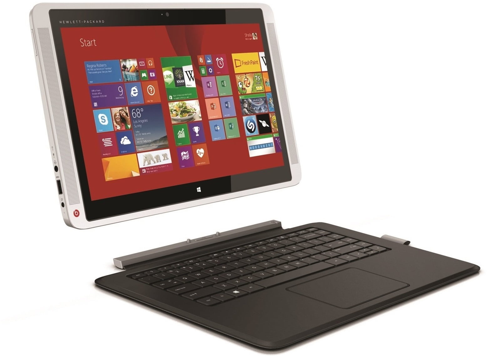 با کمک نمایشگر 13.3 اینچی لمسی که 10 انگشت را به صورت همزمان شناسایی می کند، می توانید از تجربه استفاده از انگشتانتان لذت ببرید. همچنین با کیفیت Full HD به همراه پنل IPS تجربه ای بی نظیر از وب گردی، دیدن فیلم و عکس داشته باشید. قابلیت دیگر این نوت بوک دو اسپیکر با تکنولوژی Beats Audio است که بهره مندی از بهترین و شفاف ترین صدا و بالا ترین کیفیت را امکان پذیر و دسترسی به منابع موسیقی وسیع HP از طریق اتصال به سرورهای ویژه آن، امکان گوش دادن به ایستگاه های رادیویی و ایجاد آرشیو موسیقی را ممکن می سازد که همگی در یک نرم افزار ویژه و منحصر به فرد به صورت پیش فرض روی دستگاه ارائه می شود. این تبلت- نوت بوک با چیپ ست سریع و قدرتمند Core M و درایو SSD به شما قدرت و توانایی دسترسی به اطلاعات را با سرعت برق و بدون لحظه ای اتلاف وقت می دهد. وزن ENVY x2 در حالت تبلت 1.27 و در حالت نوت بوک (به همراه کیبورد) 1.83 کیلوگرم و ضخامت آن به ترتیب 1.4 و 1.9 سانتی متر می باشد. طراحی خارق العاده و مبتکرانه این دستگاه در کنار خصوصیت تبادل هوا بدون نیاز به فن و بی صدا بودن، ویژگی های مالتی مدیایی بالا، حمل آسان به واسطه وزن ضخامت کم، قابلیت multi-angle با انعطاف پذیری و تنظیم به عالی ترین موقعیت بر اساس نیاز و باتری پرتوان، استفاده از آن را در هر زمان و مکانی به دور از نگرانی اتمام شارژ برایتان هموار و احساسی ماورای خوشبختی را تداعی می سازد. این محصول با گارانتی سازگار در بازار ارائه می شود