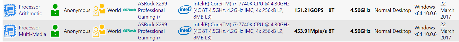 اطلاعات این CPU در پایگاه داده Sisoft به ثبت رسیده است و در کنار آن نام مادربرد ASRock X299 Professional Gaming به عنوان میزبان درج شده است. کوچکترین اطلاعاتی از این مادربرد در دست نیست. پلتفرم Intel Kaby Lake-X به عنوان اولین پردازنده های X99 راهی بازار خواهند شد؛ پس از آن Skylake-X در مدل های 6، 8 و 10 هسته ای راهی بازار می گردد. مشخصات Intel Core i7 7740K کمی عجیب است چرا که 4 هسته و 8 رشته برای آن درج شده است. احتمالا تعداد ترانزیستورها به شدت افزایش یافته است. سند این سخن، بالا رفتن توان حرارتی است.