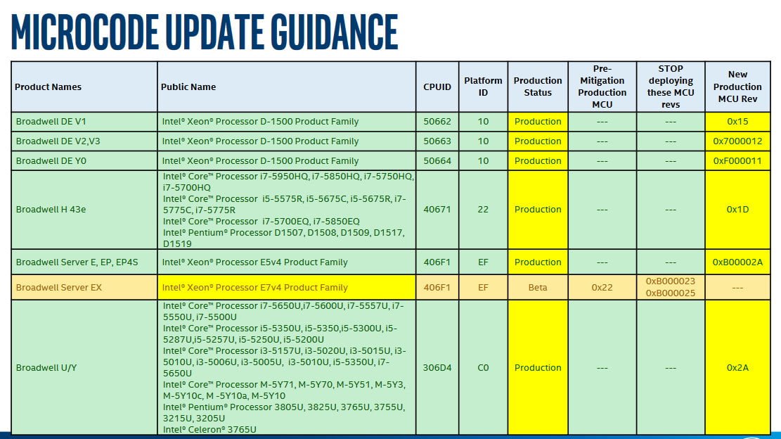 شرکت اینتل طی آخرین بروزرسانی خود، میکروکدهای جدیدی را حفاظت از پردازنده های Broadwell و Haswell منتشر کرده است. این دو پلتفرم در ایران نیز مشتریان فراوانی داشتند که همواره نگران ارائه یک آپدیت مطمئن بودند که در عین حال از کاهش سرعت سیستم آنها نیز جلوگیری به عمل آورد. با این وجود بروزرسانی امنیتی پردازنده های قدیمی تر، Sandy Bridge و Ivy Bridge، در نسخه بتا بوده و اینتل اعلام کرده است که به زودی میکروکدهای آنها را نیز ارائه خواهد کرد.