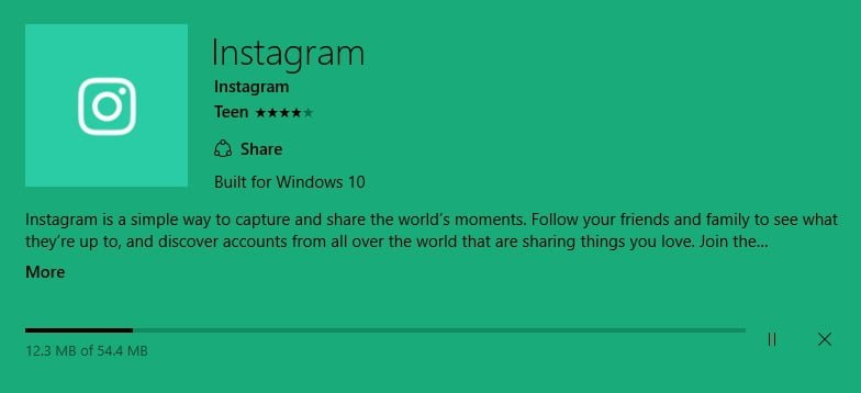 از طریق  ویندوز استور میتوانید اینستاگرام را در ویندوز خود نصب کنید. حجم این برنامه 54.4 مگابایت است.
