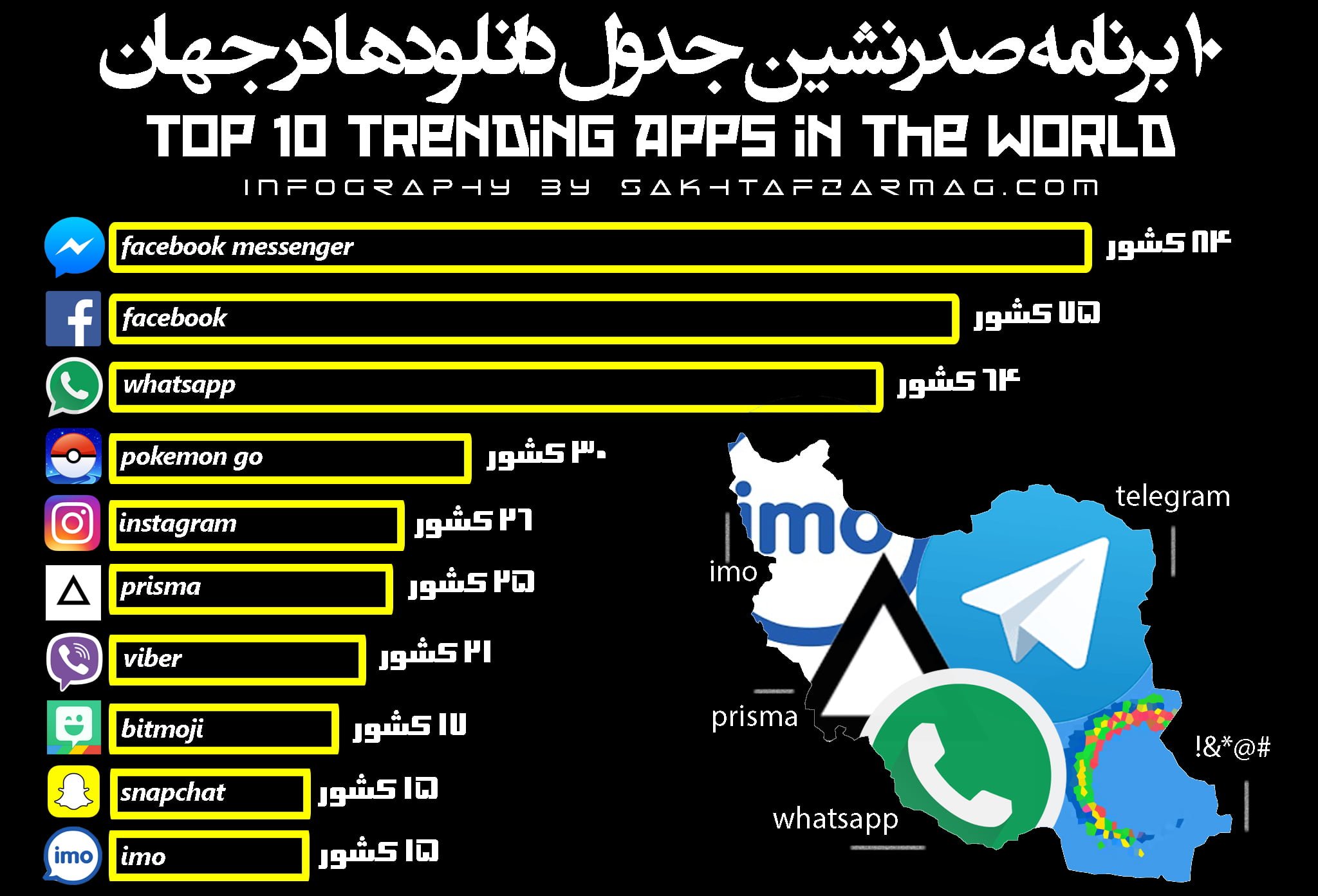 اینفوگرافی: 10 برنامه صدرنشین جدول دانلودها در کشورهای جهان