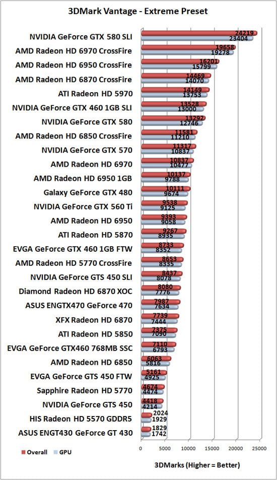 در این مقاله تنها از آن جایی که می خواهیم بدون کمترین دردسری محصول مورد نظر خود را انتخاب کنیم دو نمودار از این دو کارت گرافیک در نرم افزار های 3D mark vantage و 3D mark 11 درج کردیم که در کنار مشخصات فنی امکان انتخاب نهایی را فراهم می کند.