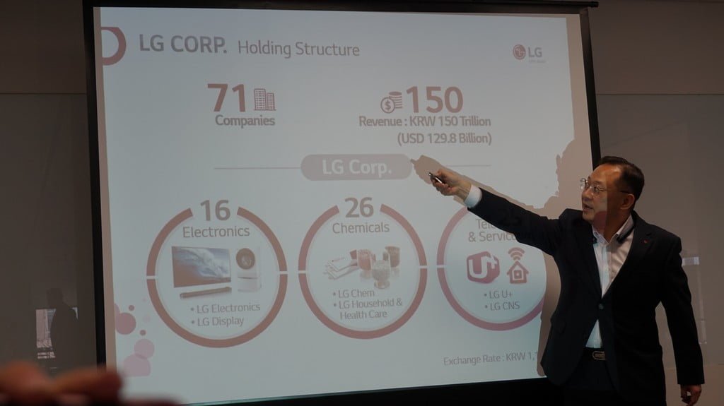 ساختار ال جی بسیار فراتر از آنچه در تبلیغات به نمایش در می آید است و مجموعه ای گسترده از بخش های صنعتی را شامل می شود که تعداد کل آنها به بیش از 70 شرکت رسیده و درآمد کل مجموعه نیز بیش از 129 میلیارد دلار تخمین زده می شود.