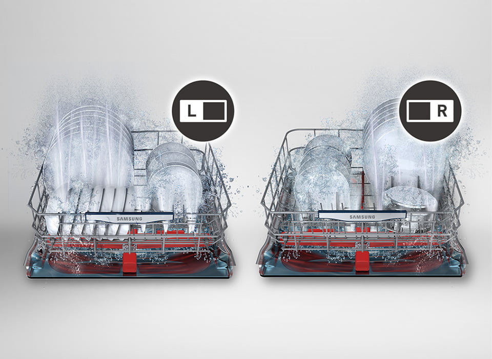 یکی از مشکلات عمده ماشینهای ظرفشویی دورانی، این است که ظروفی که در چهارگوشه آن قرار گرفتهاند، به طور کامل شسته نمیشوند. حالا اما با تکنولوژی جدید سامسونگ و استفاده از بازوی شوینده خطی، این مشکل رفع شده است. این بازو به شکل خطی عقب و جلو میرود و آب را با فشار قوی به سمت ظروف، میپاشد. این شکل از حرکت باعث میشود تا تمام فضای داخل دستگاه تحت پوشش قرار بگیرد و هیچ نقطه کوری باقی نماند. به این ترتیب ظرفهایی که در چهار گوشه قرار دارند نیز، به طور کامل شسته میشوند.
