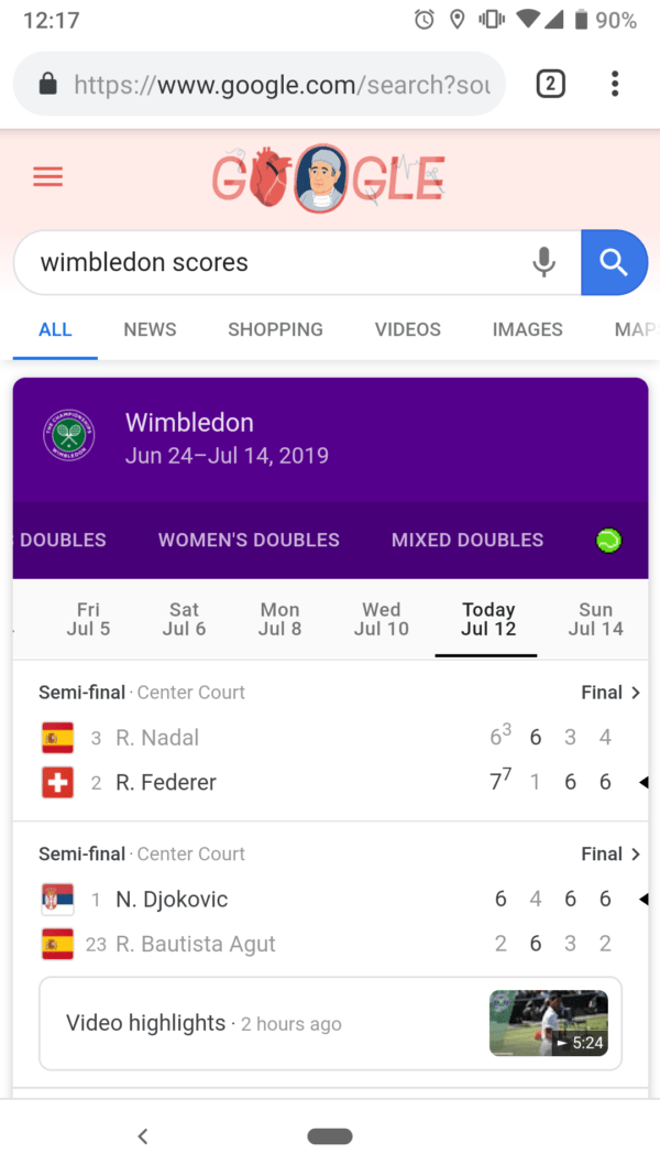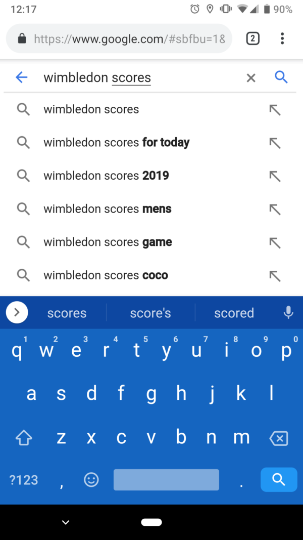 برای دسترسی به این بازی مرورگر کروم خود را در گوشی یا کامپیوتر باز کنید. در نوار جستجو عبارت Wimbledon scores را تایپ کنید.