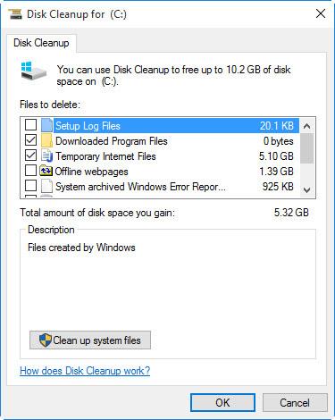 Disk Cleanup یک ابزار قابل اعتماد برای پاک سازی است که در نسل های مختلف ویندوز وجود دارد. Disk Cleanup در واقع فضای اشغال شده ی دیسک، توسط فایل های ناخواسته و موقت را در کامپیوتر پیدا میکند و آنها را حذف میکند. برای مثال ممکن است که سطل زباله حجم 1 گیگ را اشغال کرده باشد و شما یادتان نباشد آن را خالی کنید. به طور کلی این تنها یک روش برای سرعت بخشیدن به ویندوز است.