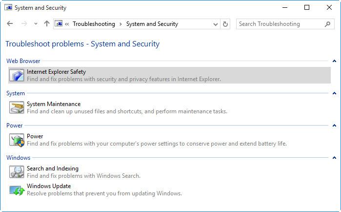 با سرچ کلمه Troubleshooting در Cortana در گزینه ی System and Security صفحه ی زیر باز میشود که متواند عت کاهش سرعت را ریشه یابی کند.