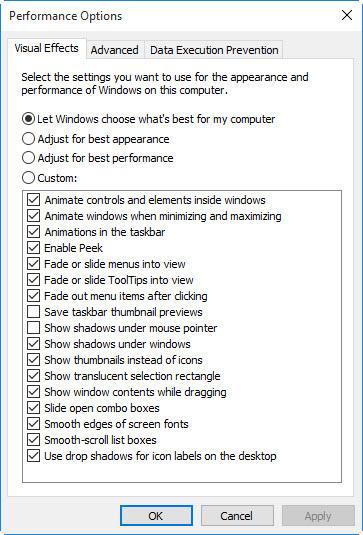 با تایپ adjust appearance در سرچ Cortana ، لیستی از قابلیت های بصری و کاربردی در اختیارتان قرار میگیرد که انتخاب ویژگی ها یا لغو تعدادی از آنها میتوانید عملکرد سیستم را بالا ببرید.