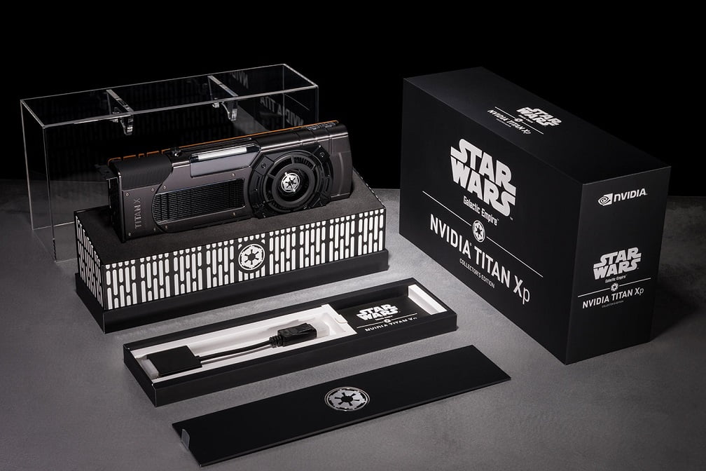 NVIDIA TITAN Xp Collector’s Edition شامل دو کارت گرافیک مود شده بر اساس بازی جنگ ستارگان (Star Wars) است. نسخه ای که به دیودهای سبز رنگ مجهز شده است با عنوان Jedi Order و نسخه ی قرمز با کمی تفاوت در طراحی کابینت نیز Galactic Empire نام دارد. به همراه هر دو کارت گرافیک یک نشان فلزی این بازی نیز به خریداران تحویل داده می شود. دست کم از نظر طراحی، تفاوت چشمگیری در بین دو مدل دیده نمی شود؛ با این وجود گیمرهایی که به دنبال یک محصول خاص هستند، می توانند سری به کارت گرافیک 1200 دلاری تایتان اکس پی با طراحی جدید بزنند.