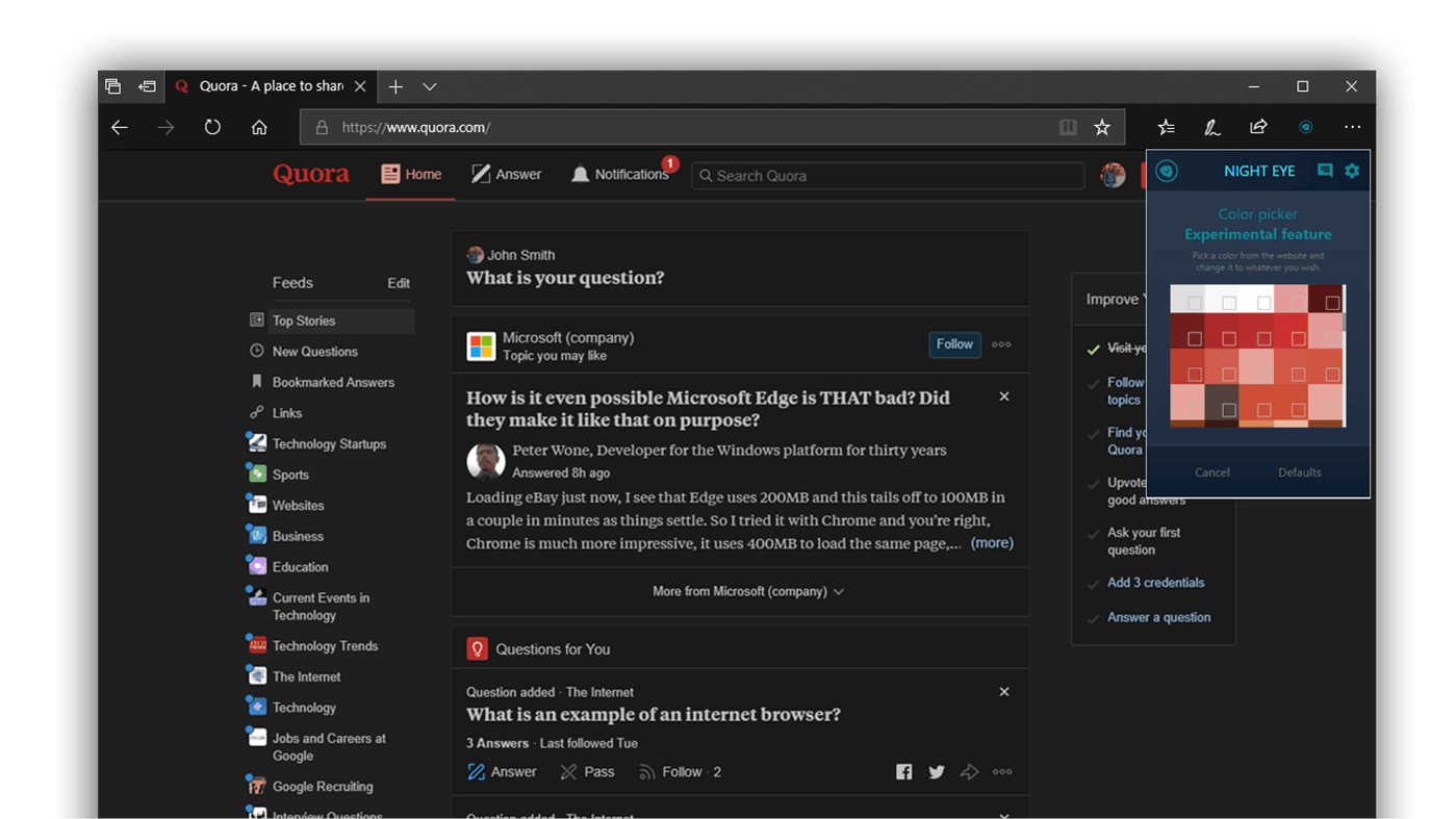 “همان طور که اشاره شد افزونه Night Eye تنها برای مرورگر مایکروسافت اج منتشر شده”