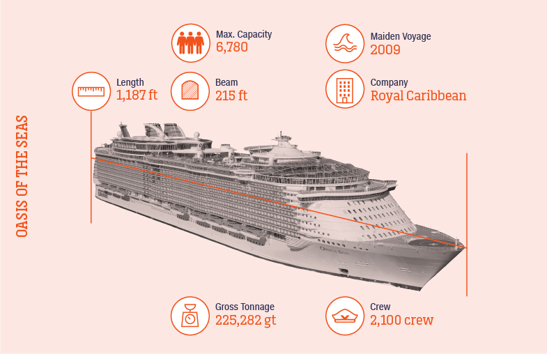 قدیمی ترین خواهر که در سال 2009 به دریا رفت، Oasis of the Seas است و برای اولین بار مفهوم داشتن هفت محله در کشتی های لوکس را ایجاد کرد که بعدها مورد استفاده سه کشتی دیگر هم قرار گرفت. این کشتی در زمان راه اندازی رکورد جدیدی زد و آن ظرفیت پذیرش 6780 نفر بود.