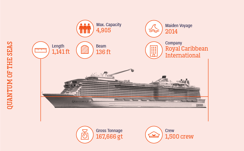 رویال کارابین سه کشتی با ابعاد کاملاً یکسان و با نام های Quantum of the Seas، Anthem of the Seas و Ovation of the Sea طراحی کرده است و کشتی های بیشتری نیز در راه است. کوانتوم از Oasis کوچکتر است اما تجربه تقریباً مشابهی را به ارمغان میاورد. این کشتی 18 رستوران، شبیه سازی اسکیت بود و کمپسول شیشه ای به شکل الماس که در ارتفاع 90 متری نمای 360 درجه را به شما هدیه میدهد بخشی از امکانات کروز کوانتوم است. محل ارائه خدمات این کشتی در اطراف چین است.