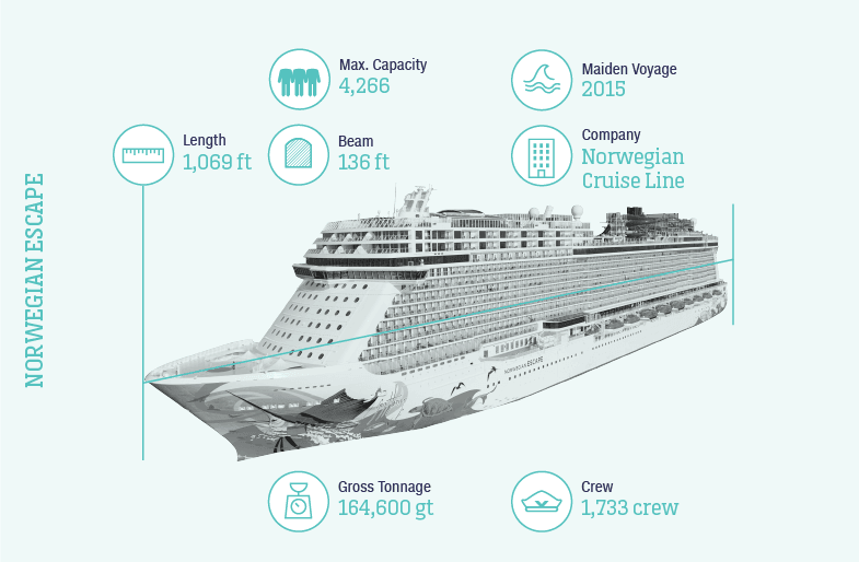 این کشتی در سال 2015 اولین کشتی نروژین کروز لاین شد که با فناوری سیستم بازچرخانی گاز اگزوز که برای از بین بردن سولفور امشید و دیگر ذرات خطرناک استفاده می شود، ساخته شد. این سیستم حالا تکمیل تر شده است و به کشتی های دیگر نیز اضافه شده است. Norwegian Escape در میامی واقع است و و کارائیب و باهاما سفر می کند.