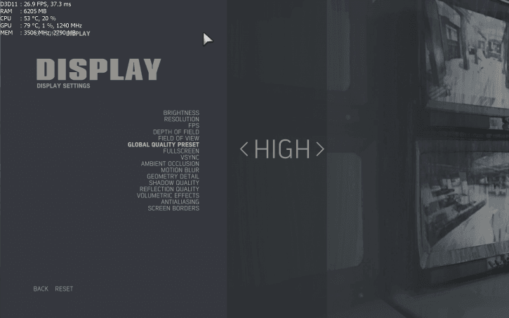 در این تست کارت های گرافیکی زیر در بهترین حالت تصویر (بهترین حالت ممکن) و خاموش بودن VSYNC و بی نهایت بودن FPS بررسی شده اند. در ابتدای عرضه این بازی توسعه دهندگان با ایجاد یک اشتباه و قفل شدن تصویر بر روی نرخ 30 فریم بر ثانیه مواجه شده اند که بلافاصله با استفاده از پچ جدید 1.01 آن را بر طرف نمودند.