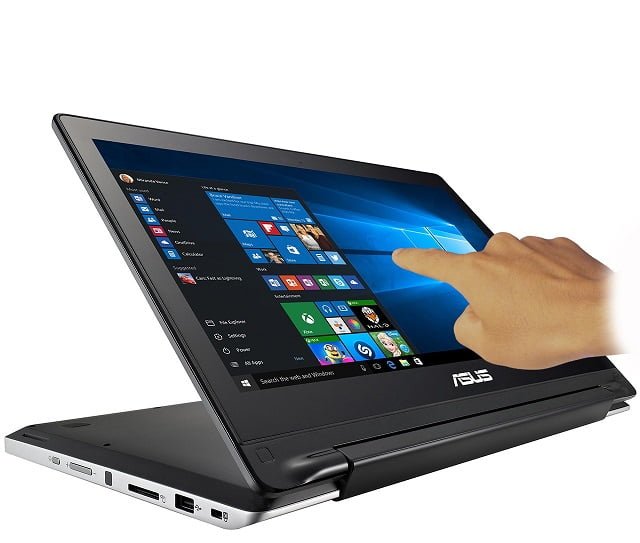 ایسوس نیز در بازار لپ تاپ های هیبریدی سهم دارد و ASUS Transformer Book Flip TP550LJ یکی از خوش قیمت ترین آنها است که برای بودجه های متوسط مناسب است. این لپ تاپ از یک نمایشگر 15.6 اینچی بهره می برد و از این رو جزو هیبریدی های بزرگ محسوب می شود. یک هارد دیسک با ظرفیت 500 گیگابایت در آن به کار رفته و نمایشگر آن از دقت HD برخوردار است. بسیاری از محدودیت های یک لپ تاپ هیبریدی در آن وجود ندارد؛ به عنوان مثال دارای درایو ODD بوده و کارت گرافیک GeForce 920M نیز به همراه 2 گیگابایت حافظه اختصاصی در آن به کار رفته است که می تواند ضمن انجام برخی از بازی ها، نرم افزارهای گرافیکی را نیز هندل نماید. باتری 2 سلولی لیتیوم-پلیمر با ظرفیت 38 وات‌ساعت آن نیز برای استفاده های متوسط کافی به نظر می رسد. قابلیت چرخش 360 درجه صفحه نمایش این محصول را به یک لپ تاپ هیبریدی مبدل کرده است. پردازنده اینتل i3 4005U نیز با فرکانس 1.7 گیگاهرتز و 3 مگابایت حافظه نهان، می تواند بسیاری از کاربردهای روزمره را پوشش دهد. در نهایت می توان به 4 گیگابایت حافظه DDR3 اشاره کرد.