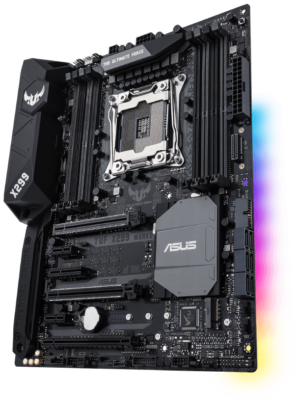 و در نهایت آخرین مادربرد لیست برترین های X299 را به مدل توانمند و با دوام ASUS TUF X299 MARK 2 اختصاص داده ایم. ایسوس (ASUS) در کامپیوتکس 2017 مادربرد جدیدی را بر اساس خانواده TUF معرفی کرد. مادربردهای TUF یا The Ultimate Force شامل محصولاتی است که دارای مقاوت بالا در برابر شرایط سخت کاری هستند. ASUS TUF X299 Mark 2 محصولی است که از چیپست قدرتمند X299 بهره می برد و دارای سوکت LGA 2066 است. استانداردهای نظامی این مادربرد باعث شده است تا ایسوس نیز از ظاهری خشن و نظامی در TUF ها استفاده نماید.  مدار تغذیه در مادربرد ASUS TUF X299 Mark 2 دارای 8 فاز رگولاتور است و 8 اسلات DIMM DDR4 با پشتیبانی از 128 گیگابایت رم نیز در آن به کار رفته است. این مادربرد دارای 3 اسلات توسعه PCI-Express 3.0 x16 است. برای ذخیره سازی، دو اسلات SSD M.2 32Gb/s و 6 رابط نسل سوم ساتا به خدمت گرفته شده است. دو رابط USB-C/A و 8 پورت USB 3.0 به همراه تراشه های صوتی Realtek ALC1220A و کنترلر Intel i219-V از جمله دیگر ویژگی های این مادربرد به شمار می روند.
