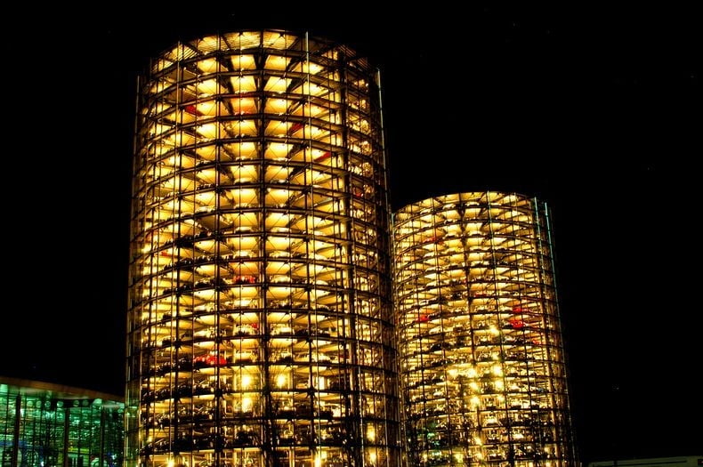 به راحتی میتوان این دو ساختمان با ظاهری ساده را، در بین جذابترین سازه های مربوط به صنعت خودرو قرار داد. دو سازه سیلو مانند که نمای بیرون آن کاملا شیشه ایست و بطور اختصاصی برای نگهداری خودرو طراحی شده اند. ساختمان بزرگتر حدود 50 متر ارتفاع دارد و قابلیت نگهداری حدود 400 دستگاه خودرو را دارد. این گاراژیست که خوره های تکنولوژی به آن علاقه دارند. البته این خودروها صرفا برای نمایش نگهداری نمیشوند، بلکه آماده تحویل به مشتریان هستند. از سال 2000 تا کنون که این موزه افتتاح شده است، بیش از 2 میلیون مشتری درخواست کرده اند که خودرویشان از این برجها تحویل آنها شود. در روز بیش از 500 خودرو در این برجها جابجا میشوند و خودروها تنها 24 ساعت برای استراحت در این برج های جذاب فرصت دارند. فولکس به دیجیتال ترند گفته است؛ ما فضای زیادی برای ایجاد برج های بیشتر در اختیار داریم، اما این کار هم از جذابیت این دو برج میکاهد، به علاوه اینکه مرکز تحویل آنها با ظرفیت کامل در حال سرویس دهیست.