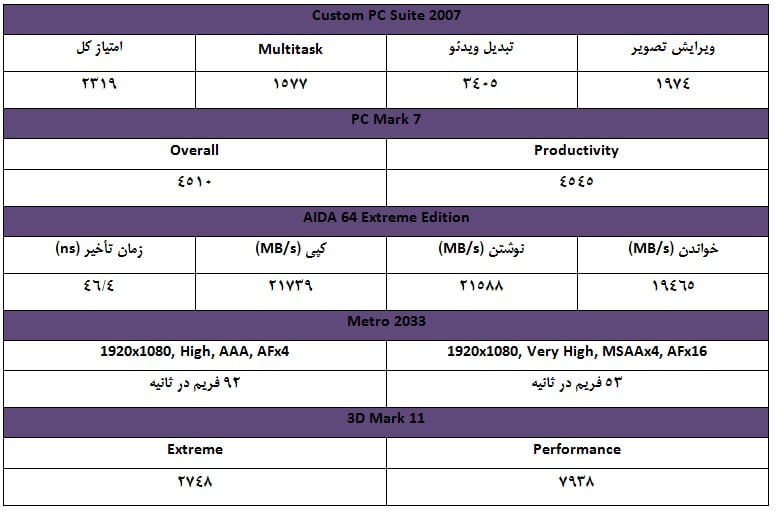 جدول زير، نتایج تست GSkill Sniper DDR3 1600 را نشان می‌دهد.