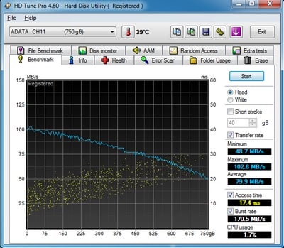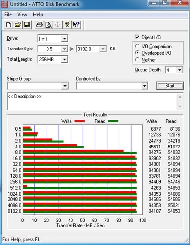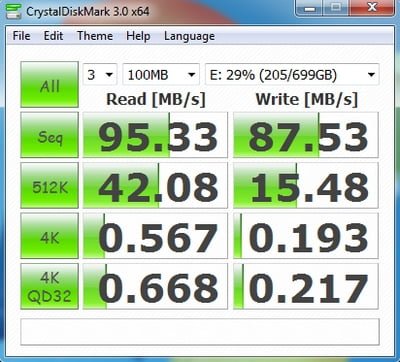 پردازنده Intel Core i5 2500K، مادربورد ASRock H67M GE/HT، چهار گیگابایت حافظه Team Group DDR3 1333، کارت‌گرافیک Asus GTX 560 Ti Direct CU II، هارددیسک Seagate 7200.11 پانصد گیگابایتی، درایو SSD مدل ADATA S592 با ظرفیت 32 گیگابایت، منبع‌تغذیه Green 1235watt. براي تست از سه نرم‌افزار ATTO، Crystal Disk و HD Tune معروفي که بيشتر سايت‌ها از آن براي تست وسايل ذخيره‌سازي استفاده مي‌کنند، بهره برديم که نتايج آن را به ترتيب در تصاوير مي‌بينيد.