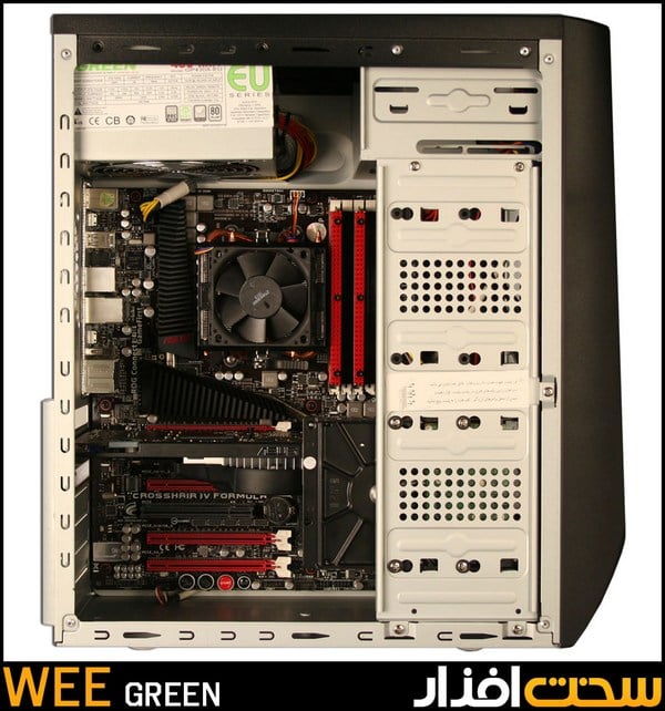 نمای داخلی کیس با ظاهر کوچک آن بسیار در تضاد است، به نحوی که از کمترين فضا به بهترين نحو استفاده شده و به‌طور باور نکردنی مادربوردهایی با ابعاد ATX به راحتي در آن قرار مي‌گيرند. نکته منفی کیس هنگام نصب هاردديسک‌ها به چشم می‌خورد که جایگاه کابل‌های هاردديسک با فن دوازده سانتی جلوی کیس کمی تداخل دارد. به جز این مورد، نصب و سرهم کردن بقیه قطعات در کیس بدون مشکل و در زمان مناسبی انجام گرفت.