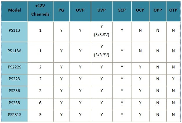 در جدول زير مشخصات چند نوع از محبوبترين مدارات مجتمع شده محافظت در طرف ثانويه منبعتغذيههاي امروزي ارايه ميكنيم: