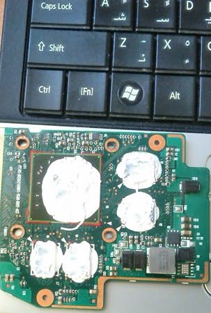 نوع خمیر سیلیکون مورد استفاده در لپ تاپ ها بسیار مهم است.به هنگام تعویض خمیر سیلیکون لپ تاپ ها اقدامات احتیاطی ضروری است.دقت فرماید که از خمیرهایی با کیفیت و در صورت امکان از خمیر های تولید ایالات متحده استفاده گردد.سیلیکون هایی که از درصد بالای نقره و فلزات در ترکیب خود استفاده می کنند،بهترین بازدهی را خواهند داشت.به عنوان مثال به تصاویر دقت فرمایید.این تصاویر مربوط به یک لپ تاپ TOSHIBA A300 است که یک تعمیرکار آماتور به علت زدن خمیر سیلیکون بیش از حد و استفاده از خمیر نامناسب باعث شده است تا چیپست دچار ایراد گردد و سیستم متاسفانه دچار صدمه جبران ناپذیری شده است.دمای چیپ ست در عرض 1.5 دقیقه به حدی بالا می رود که باعث سوخت دست خواهد شد.خمیر سیلیکون بیش از اندازه و بی کیفیت،باعث نشت مایع درون خمیر به بیرون و حجم زیاد مورد استفاده خمیر باعث اتصال کوتاه بین PTC ها شده و متاسفانه مشکلات عرض شده را به وجود خواهد آورد.
