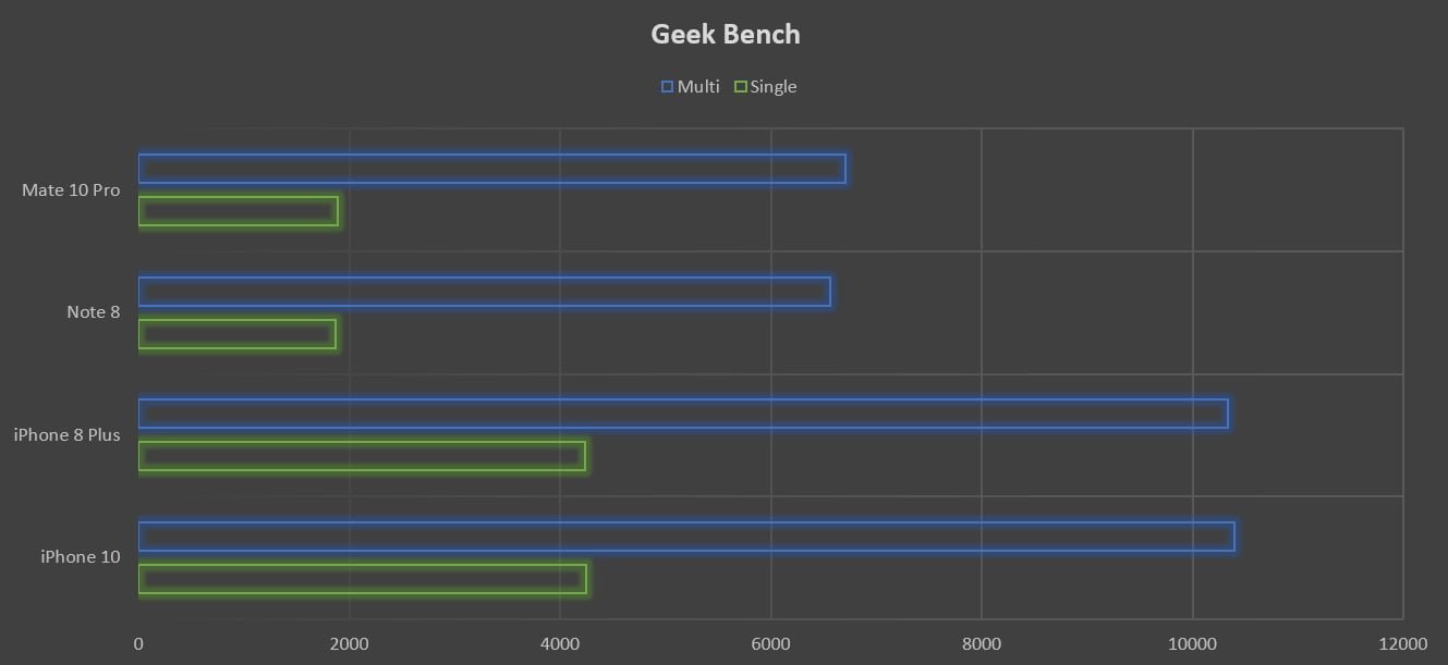 از نظر سخت افزاری همواره اپل را در صدر جدول بنچمارک ها دیده ایم. همین ماجرا برای آیفون X هم تکرار می شود. پردازنده A11 Bionic احتمالا قدرتمندترین چیپ پردازشی موبایل در جهان است که دارای شش هسته در فرکانس 2.3 گیگاهرتز بوده و با معماری 10 نانومتری ساخته شده است. حافظه رم این دستگاه 3 گیگابایت است اما بهینه سازی های انجام شده توسط اپل باعث شده سرعت پردازش آن با گوشی هایی مجهز به 6 گیگابایت رم نیز قابل مقایسه باشد. برنامه ها با سرعت بسیار بالایی اجرا می شوند و جا به جایی بین آنها نیز بدون تاخیر و کندی صورت می پذیرد.