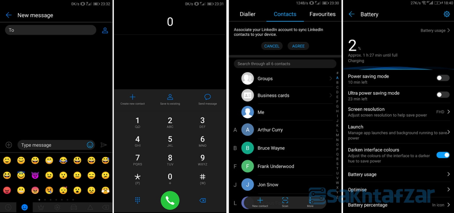 دیگر ویژگی EMUI 8.0 که به خصوص در Mate 10 Pro بسیار کاربردی به نظر میرسد امکان استفاده از حالت دو پنجره همزمان است. نمایشگر بزرگ این گوشی به شما اجازه خواهد داد به صورت همزمان دو پنجره را به شکل بالا-پایین باز کنید و به انجام کارهایتان بپردازید. هوش مصنوعی نیز به کمک رابط کاربری آمده تا برای مثال چینش بخش تنظیمات بر اساس تعداد دفعات بازدید شما از یک گزینه خاص تنظیم شود. اگر هر روز چندین بار به بخش باتری در منوی تنظیمات سر می زنید به تدریج مشاهده خواهید کرد که این گزینه بالاتر از سایر بخش های تنظیمات به نمایش در می آید.