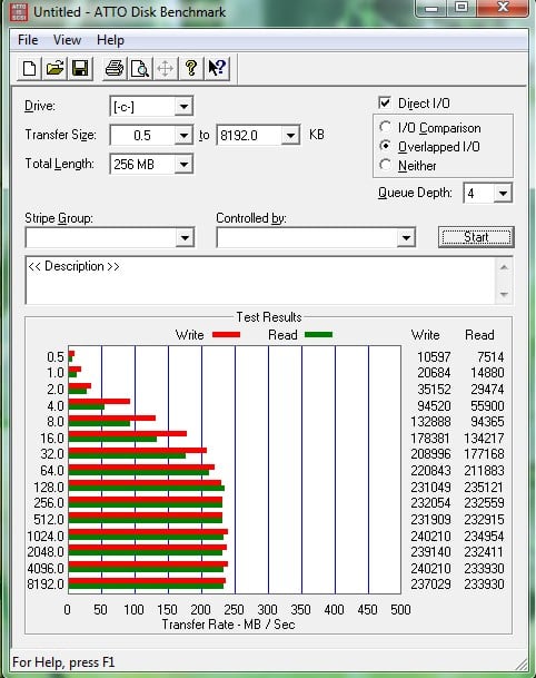 با این حال، در تست ATTO Disk Benchmark میبینیم که حداکثر سرعت خواندن و نوشتن بهطور کامل به حداکثر مقدار ذکرشده روی هارددیسک میرسد.