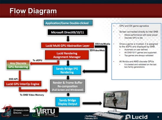 نرمافزار Virtu شركت Lucid اجازه ميدهد، سيستم در حاليكه داراي كارتگرافيكي مستقل است از پردازندهگرافيكي تعبيهشده در پردازنده نيز استفاده كند. به عبارت ديگر، اين نرمافزار به كاربر اجازه ميدهد، علاوه بر قدرت پردازش كارتهاي گرافيكي مستقل، از ويژگيهاي منحصر بهفرد پردازندهگرافيكي مجتمع در پردازندههاي اينتل مانند Quick Sync و رمزگشايي ويدئويي لذت ببرند.