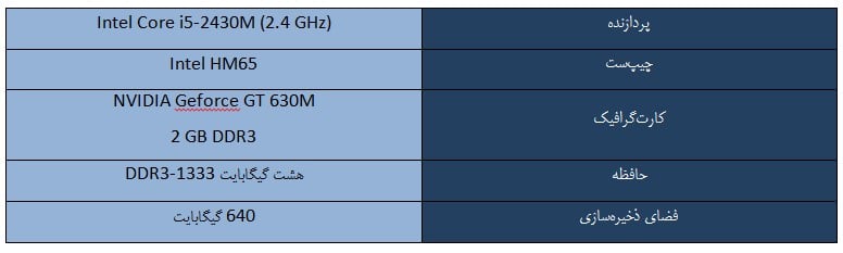 جدول زیر مشخصات سخت‌افزاری این نوت‌بوک را نشان می‌دهد: