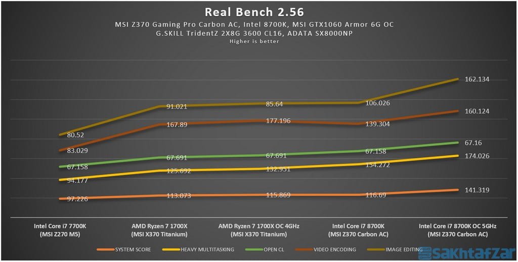 همانطور که در نتایج مشخص است، 8700K در حالت اورکلاک تا 5 گیگاهرتز، در برخی از تست ها، شانه به شانه Ryzen 7 1700X قرار گرفته، و در برخی دیگر، بالاتر از 1700X ایستاد. باید اعتراف کرد وقتی 8700K با وجود 4 رشته پردازشی کمتر نسبت به Ryzen 7 1700X، در بیشتر تست ها قوی تر از 1700X ظاهر می شود، تنها نتیجه ای که می توان گرفت، پیروزی عملی 8700K نسبت به 1700X است. اما فراموش نکنیم، حتی اگر در تست ها 1700X پشت سر 8700K قرار بگیرد، با توجه به اختلاف قیمتی 600 هزار تومانی که در حال حاضر در بازار ایران بین این دو پردازنده وجود دارد، 1700X ارزش خرید بالاتری دارد و از این جهت برنده ی میدان رقابت در بازار است. اورکلاک پردازنده و رم با مادربرد MSI Z370 Gaming Pro Carbon AC بسیار راحت و پایدار بود. در زمانی که سیستم Fail می شد، اتوماتیک مادربرد روی آخرین تنظیم بالا می آمد و نیازی به ریست کردن بایوس نبود. ثبات در فرکانس بالا از جمله موارد مهم برای اورکلاک 24/7 است که در این مادربرد مشاهده کردیم. سعی شد وقتی سیستم تحت فشار تست است از امکانات مادربرد استفاده کنیم که بدون محدودیت و مشکل حتی حالات رقص نور ها را عوض کردیم.در تست های گیم نیز از مادربرد رضایت کامل را داشتیم. بی شک از نظر گیمینگ می توان با استفاده از این برد، یک سیستم قدرتمند گیمینگ را ساخت که در عین قدرت، زیبایی بصری ویژه ای با LED RGB داشته باشد.
