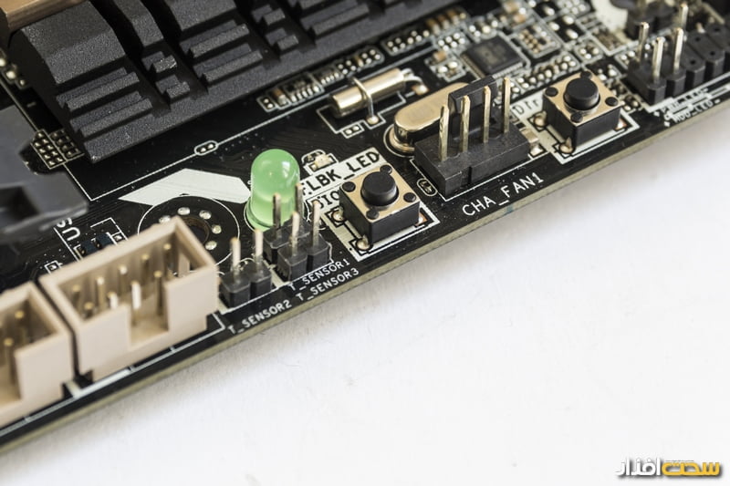 اما LED بزرگ و سبز رنگ در پایین مادربورد واقعاً با بقیه بخشهای مدرن این محصول همخوانی نداشته و میتوان از کلمه زشت برای توصیف آن استفاده کرد! (تصویر 4)