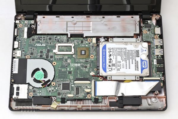 حافظهها از راه دریچه زیر نتبوک قابل دسترسی هستند. در این مدل از دو ماژول دو گیگابایتی Hynix استفاده شدهاست. برای باز کردن این نتبوک باید نخست صفحهکلید و Touchpad از روی آن جدا شود. زیر این دو بخش، هارددیسک Western Digital Scorpio Blue با ظرفیت پانصد گیگابایت و چیپست مادربورد دیدهمیشوند.