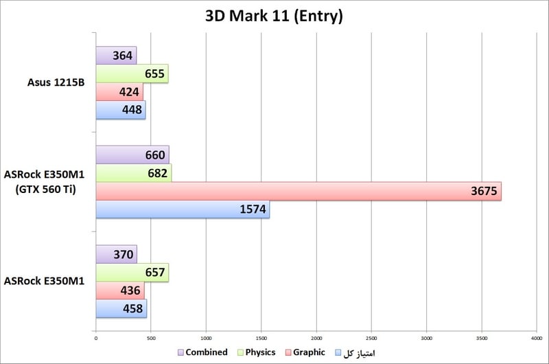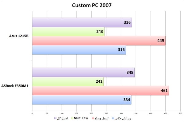از آنجا که ASRock E350M1 ساختاری شبیه این نتبوک دارد، در کنار نتایج تست این نتبوک، نتایج تست ASRock E350M1 را نیز قرار دادیم. جدول نتايج، مقایسه بین کارایی این دو دستگاه را نشان میدهد.