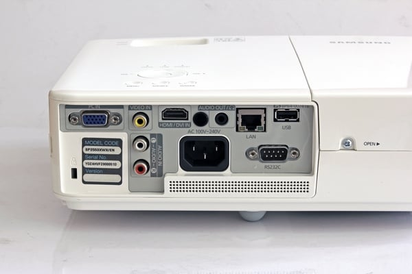 Composite ،D-Sub و HDMI میشود. حداکثر دقت تصویر در پورت D-Sub برابر با 1200×1600 پیکسل و در پورت HDMI (که میتوان از مبدلهای DVI به HDMI نیز روی آن استفاده کرد) 1080i است. در این ویدئوپروژکتور یک بلندگوی هفت واتی وجود دارد، در عین حال یک خروجی 3/5 میلیمتری صدای استریو نیز در نظر گرفته شدهاست. یک اتصال RS232C نیز در اینجا دیدهمیشود اما دو پورت جالب توجه این قسمت، اتصال شبکه و یک پورت USB است. برای اتصال این دستگاه به شبکه باید آن را به روتر یا مودمی وصل کنید که قابلیت اختصاص خودکار IP به دستگاهها را داشتهباشد (DHCP) و نمیتوان به صورت دستی برای ویدئوپروژکتور IP تعریف کرد.