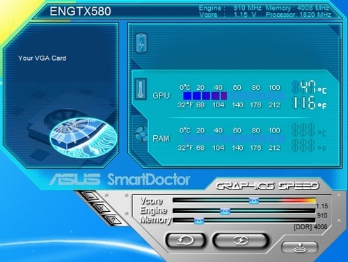 اما مهمترین ویژگی این کارتگرافیک، قابلیت Voltage Tweak آن است. نرمافزار مخصوص این ویژگی، Smart Doctor نام دارد که به کمک آن میتوان فرکانس حافظه و پردازندهگرافیکی و ولتاژ پردازندهگرافیکی را تغییر داد.