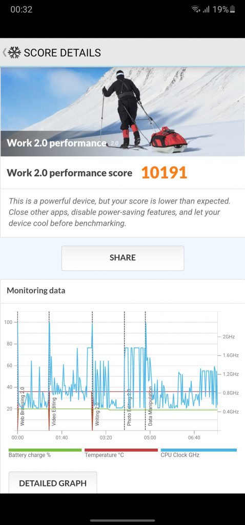 با این حال؛ فارغ از ذهنیت‌های موجود، تصمیم گرفتیم که عملکرد این باتری را در تست بنچمارک PCMark مورد بررسی قرار دهیم. در ابتدا با تنظیم نمایشگر بر روی حالت Adaptive 120Hz و باتری بر روی High Performance به سراغ این تست رفتیم. همانطور که پیش‌بینی می‌شد، نوت 20 اولترا عملکرد خوبی در این آزمون نداشت و تنها 7 ساعت و 41 دقیقه دوام آورد. این پایین‌تری عددی است که تا امروز ما در تست‌های بنچمارک باتری به آن برخورده‌ایم. با تمام این اوصاف یک بار دیگر تست را در حالت نمایشگر استاندارد 60 هرتز و باتری Optimized تکرار کردیم. این بار عملکرد نوت 20 اولترا در حدود 3 ساعت بهبود پیدا کرد و به 10 ساعت و 51 دقیقه رسید.
